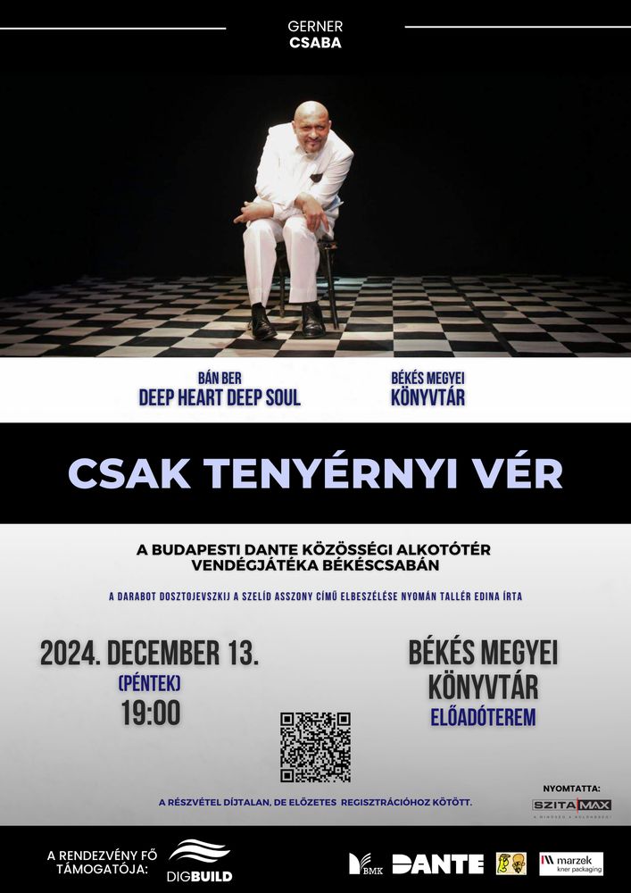 A Bán Ber Deep Heart Deep Soul Irodalmi Társaság, a Békés Megyei Könyvtár és a DIG-BUILD Kft. együttműködésének köszönhetően a budapesti DANTE Közösségi Alkotótér vendégjátéka érkezik Békéscsabára.